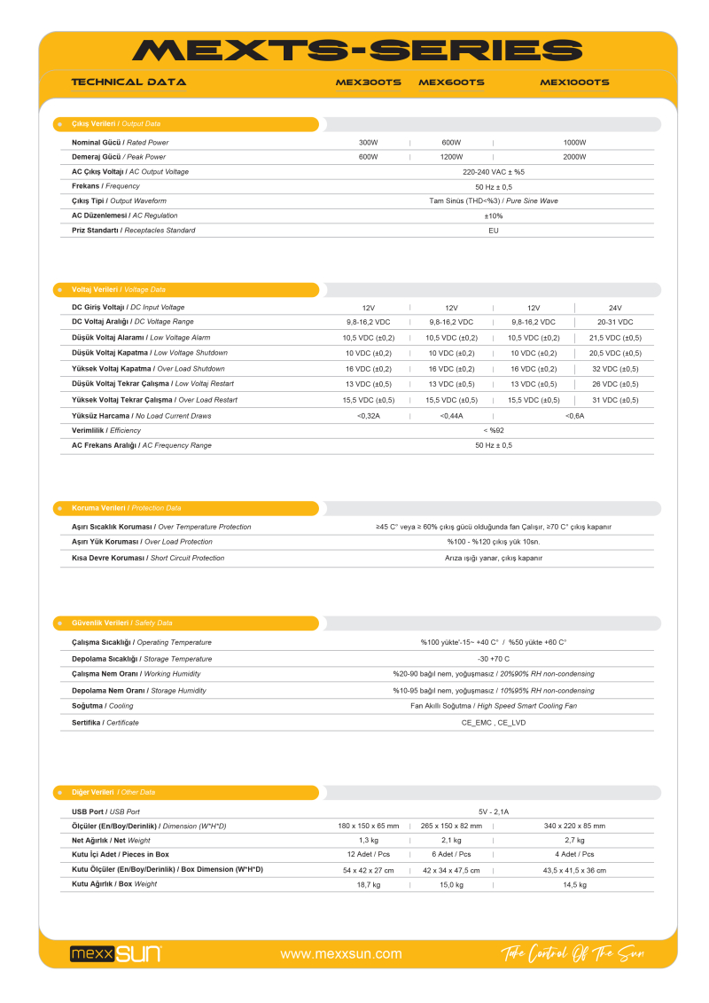 - Mexxsun 600 Watt Tam Sinüs İnverter, evde, kampta veya yolculuk sırasında güçlü bir ortak olarak her türlü enerji ihtiyacınızı karşılar. DC giriş voltajı sayesinde güneş panellerine ve akülere bağlanabilir, bu da enerji verimliliğini artırır.
